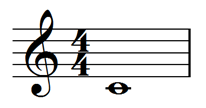 In MusicXML, a song with the lyrics "hello, world" is actually more complicated than we need for a simple MusicXML file. Let us keep things even simpler: a one-measure piece of music that contains a whole note on middle C, based in 4/4 time: